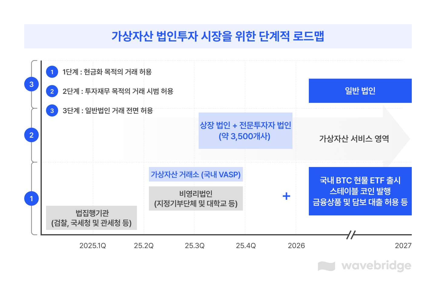 3단계에서는 일반 법인의 진입이 예고되어 있으나, 구체적 시기와 요건은 미정입니다.