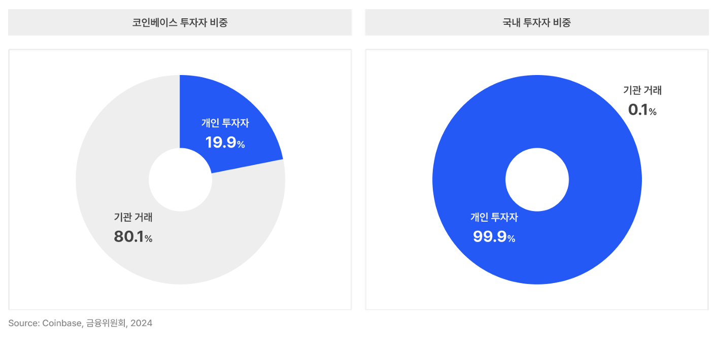 한국의 디지털자산 인프라는 지난 12년간 안정성과 신뢰성을 확보해왔습니다. 특히 2021년 특정금융정보법 시행 이후 도입된 실명 확인 입출금 계좌 시스템은 자금세탁방지와 투자자 보호 측면에서 세계적으로 모범 사례로 평가받고 있습니다. 무엇보다도 다른 국가들과 달리 기관 주도 자금이 아닌 리테일 투자자의 실제 원화가 투입되어 왔으며, 순수 현물 거래만으로도 연간 2,500조 원 규모의 거래량을 달성했습니다.